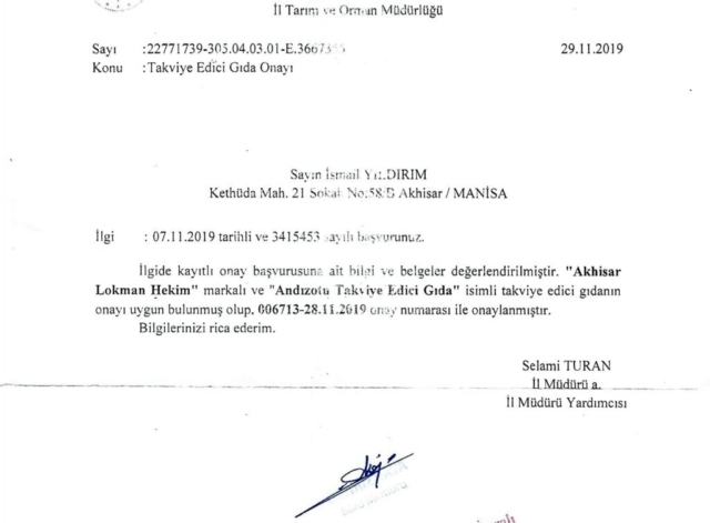 Lokman Hekim olarak Andız Otu toplama, kurutma ve satış olarak, Türkiye de İlk Tarım Bakanlığı ve Sağlık Bakanlığından izin ve ruhsatlarını almıştır.